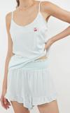 Tarz Rahat Kolsuz Kol Geniş Paça Avokado Nakışlı Fırfırlı İp Viskon Dokuma Pijama Takımı