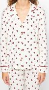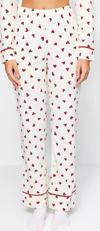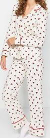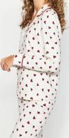 Tarz Rahat Uzun Kollu Boru Paça %100 Pamuk Kalp Desenli Gömlek-Pantolon Örme Pijama Takımı
