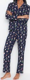 Tarz Rahat Uzun Kollu Boru Paça %100 Pamuk Penguen Desenli Kış Temalı Örme Pijama Takımı