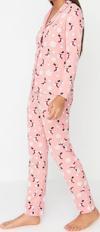 Tarz Rahat Uzun Kollu Boru Paça %100 Pamuk Yılbaşı Temalı Örme Pijama Takımı