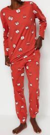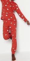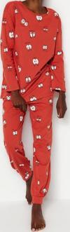 Tarz Rahat Uzun Kollu Boru Paça %100 Pamuklu Göz Desenli T-shirt-Jogger Örme Pijama Takımı
