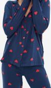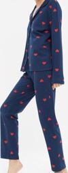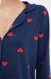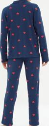 Tarz Rahat Uzun Kollu Boru Paça %100 Pamuklu Kalp Desenli Örme Pijama Takımı