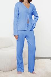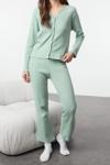 Tarz Rahat Uzun Kollu Boru Paça Fırçalı Soft Fitilli Hırka Örme Pijama Takımı