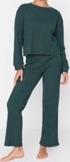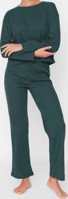 Tarz Rahat Uzun Kollu Boru Paça Fitilli Örme Pijama Takımı