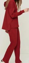 Tarz Rahat Uzun Kollu Boru Paça Fitilli Pamuklu Örme Pijama Takımı