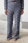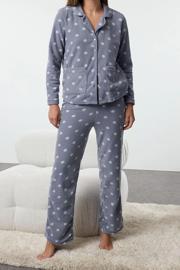 Tarz Rahat Uzun Kollu Boru Paça Gri Kış Temalı Cepli Polar Kışlık Örme Pijama Takımı