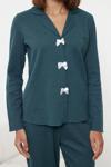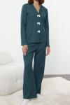 Tarz Rahat Uzun Kollu Boru Paça Kurdele Fiyonklu Waffle Kumaş Örme Pijama Takımı