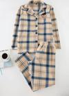 Tarz Rahat Uzun Kollu Boru Paça Nakışlı Ekoseli Polar Kışlık Örme Pijama Takımı