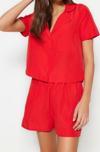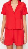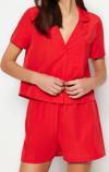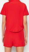 Tarz Rahat Uzun Kollu Boru Paça Terrycotton Gömlek-Şort Dokuma Pijama Takımı