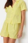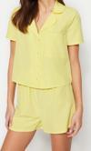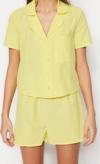 Tarz Rahat Uzun Kollu Boru Paça Terrycotton Gömlek-Şort Dokuma Pijama Takımı