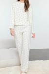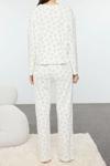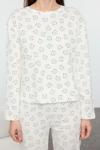 Tarz Rahat Uzun Kollu Geniş Paça %100 Pamuklu Ayıcık Desenli Örme Pijama Takımı