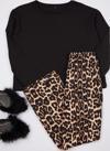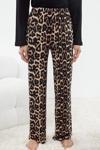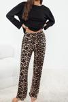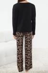 Tarz Rahat Uzun Kollu Geniş Paça %100 Pamuklu Leopar Desenli Örme Pijama Takımı