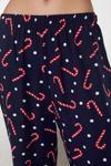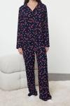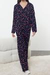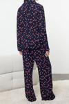 Tarz Rahat Uzun Kollu Geniş Paça Puantiyeli Yılbaşı Temalı Viskon Dokuma Pijama Takımı