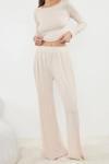 Tarz Rahat Uzun Kollu Geniş Paça Viskon Örme Pijama Takımı
