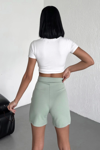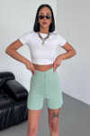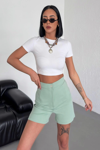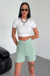 -Gardırobunuzun canlı ve enerjik parçası haline gelecek bu su yeşili krep şortu, favori tişörtünüz veya gömleğinizle kombinleyerek kişisel tarzınızı yansıtabilir ve her ortamda dikkat çekici bir görünüm elde edebilirsiniz.