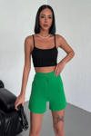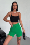 -Gardırobunuzun canlı ve enerjik parçası haline gelecek bu yeşil krep şortu, favori tişörtünüz veya gömleğinizle kombinleyerek kişisel tarzınızı yansıtabilir ve her ortamda dikkat çekici bir görünüm elde edebilirsiniz.