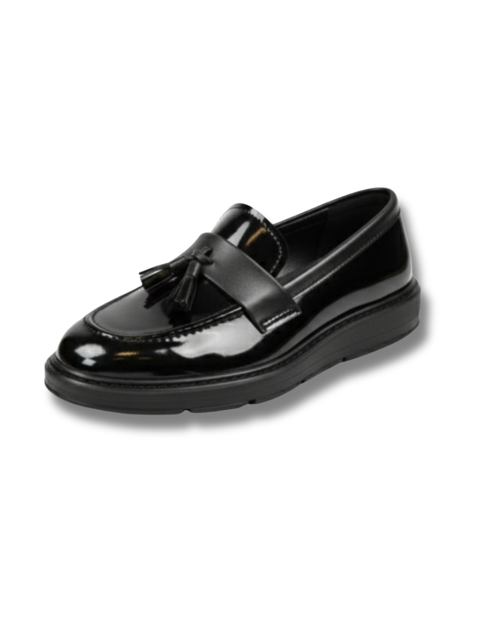 - TASARIM: Klasik püsküllü loafer tasarımı, rugan siyah parlak yüzey ve mat detaylarla şık bir görünüm sunar