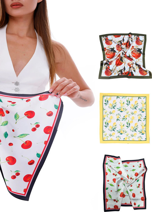 Enerjini Yansıt – 3’lü Meyve Desenli Özel Fular Seti Taze, renkli ve neşeli! 3’lü Meyve Fular Seti, stiline canlılık katmak isteyenler için tasarlandı.; Her biri farklı meyve desenleriyle hazırlanan bu özel set, enerjik ruhunu ve özgün tarzını yansıtmanın en tatlı yolu.; Yumuşak dokusu, dikkat çekici renk geçişleri ve eğlenceli tasarımıyla ister günlük kombinlerinde ister özel anlarında fark yaratır.; Küçük bir dokunuşla büyük bir etki bırak.