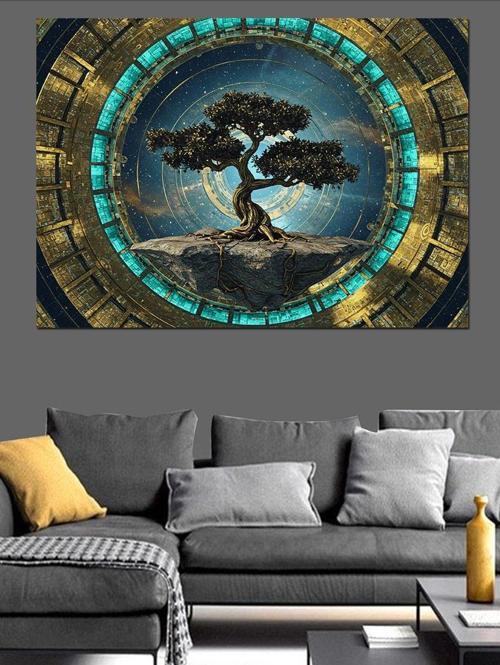 Karizmart Taş Desenli Yuvarlak Mozaik Ağaç Dekoratif Kanvas - Mdf Ahşap Tablo