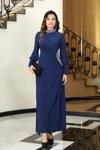 Esilanur Karaca Önü Drapeli Aplikli Tesettür Abiye Lacivert