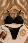 Kendinizi hem zarif hem de göz alıcı hissetmek için tasarlanan bu siyah taş detaylı iç çamaşır takımı, ışıltılı detaylarıyla gecenin yıldızı olmanızı sağlar.