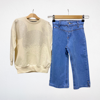Işıltıyı seven minik moda ikonları için harika bir ikili! Ekru renkli, taş işlemeli sweatshirt ve mavi, taş detaylı paçaları geniş kesim pantolonla stil sahibi bir görünüm sunar. Hem günlük kombinlerde hem de özel günlerde parlamak isteyen kızlar için tasarlandı.