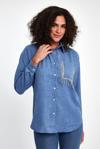 Kadın Pamuklu Günlük Gömlek; Bebe Yaka; Truvakar Kol; Brode Dokuma; Regular Kalıp Hafta Sonu - Image 1