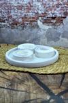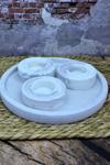 Mum ve Parafin Taş Tozu 3’lü Tealight Mumluk Seti – Dekoratif Yuvarlak Tabaklı Mumluk Mermer Taş Tozu