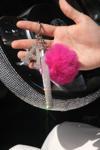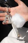 Şık tasarımıyla dikkat çeken gümüş renkli minik ponpon harf anahtarlık, kişisel tarzınıza renk katmak için idealdir.