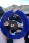 Saks Mavi Kürk Gümüş Taş Şeritli Direksiyon Kılıfı