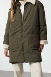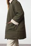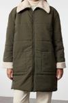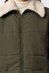 Ersefa Tasarım Düz Astarlı Yaka Midi Bol Gömlek Kadın Peluş Yaka Detaylı Su İticili Kapitone Şişme Mont