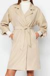 Tasarım Düz Astarlı Yaka Midi Oversize Ceket Kadın Oversize Kuşaklı Su İtici Uzun Trençkot - Bu kadın trençkot, klasik çizgisi ve modern detaylarıyla her tarza uyum sağlayan şık bir dış giyim parçasıdır.