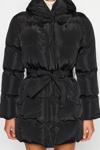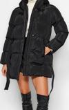Tasarım Düz Astarlı Yaka Midi Regular Kapüşonlu Kadın Regular Kuşaklı Su İtici Şişme Mont - Ürünümüz, soğuk kış günlerinde şıklığınızı koruyarak sıcak kalmanızı sağlar.