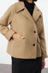 Tasarım Düz Astarlı Yaka Standart Regular Ceket Kadın Regular Kısa Yünlü Kaban - Ürünümüz, soğuk havalarda tarzınızı koruyarak sıcacık bir koruma sağlar.
