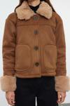 Tasarım Düz Astarlı Yaka Standart Regular Gömlek Kadın Regular Peluş Detaylı Süet Mont - Ürünümüz, soğuk kış günlerinde şıklığınızı koruyarak sıcak kalmanızı sağlar.