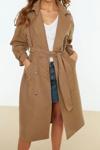 Tasarım Düz Astarlı Yaka Uzun Oversize Ceket Kadın Oversize Kuşaklı Trençkot - Bu kadın trençkot, klasik çizgisi ve modern detaylarıyla her tarza uyum sağlayan şık bir dış giyim parçasıdır.