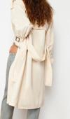 Tasarım Düz Astarlı Yaka Uzun Oversize Ceket Kadın Oversize Kuşaklı Trençkot - Bu kadın trençkot, klasik çizgisi ve modern detaylarıyla her tarza uyum sağlayan şık bir dış giyim parçasıdır.