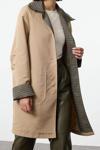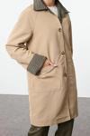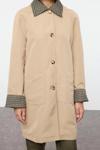 Tasarım Ekose Astarlı Yaka Uzun Regular Gömlek Kadın Ekose Astarlı Regular Midi Trençkot - Bu kadın trençkot, klasik çizgisi ve modern detaylarıyla her tarza uyum sağlayan şık bir dış giyim parçasıdır.