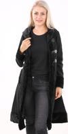 Desen Triko Kadın Polo Yaka Desenli Kaban 0241202 Siyah