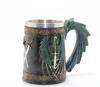 Tasarım Kupa Bardak Model 2, ejderha temalı detayları ve gotik tasarımıyla dikkat çeken, hem koleksiyonluk hem de günlük kullanıma uygun bir bardaktır. Sap kısmı ejderha kanadı şeklinde tasarlanmış olup, dış yüzeyinde kılıç ve ejderha figürleri bulunmaktadır. Paslanmaz çelik iç haznesi sayesinde içeceklerin sıcaklığını uzun süre muhafaza eder ve kolay temizlenebilir. Estetik ve dayanıklı yapısıyla kahve, çay ve diğer içecekleriniz için ideal bir seçimdir.