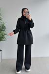 Kuşak Detay Dökümlü İkili Takım - Siyah - Image 1