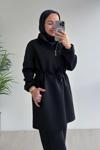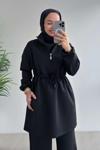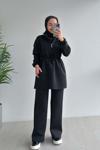 Ka Hijab Kuşak Detay Dökümlü İkili Takım - Siyah