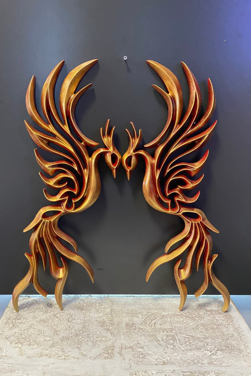 Anka kuşu temalı tasarımıyla dikkat çeken bu duvar dekorasyonu, evinizin atmosferini zenginleştirirken aynı zamanda sanatsal bir ifade sunar