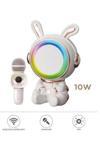 Skygo Taşınabilir Rgb Işılı Sevimli Figürlü Mikrofonlu Karaoke Bluetooth Hoparlör Krem