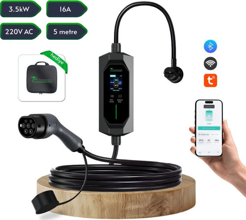Cks Enerji Taşınabilir Şarj Cihazı 3.5 kW / 16A / Tip-2 / Ev Tipi Schuko Fiş / 5m Kablolu / 220V AC / Taşıma Çantası Hediyeli