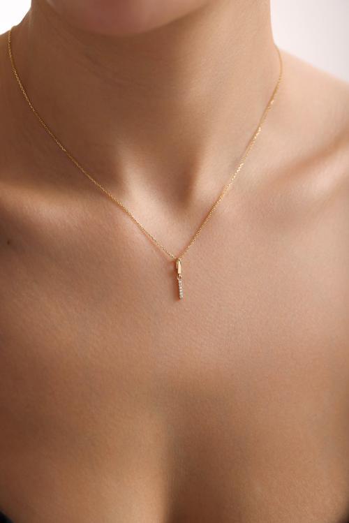 14 Ayar Altın Taşlı Harf Kilitli Charm Kolye Ucu