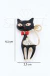 Metal malzeme kullanımı sayesinde uzun ömürlü ve dayanıklı bir yapıya sahiptir; Gençlerin enerjisini ve stilini yansıtan tasarımıyla dikkat çeker; Siyah kedi broş, her türlü kıyafetle kolayca uyum sağlar ve şıklığınızı tamamlar; Taşlı kırmızı papyon detayı ile modern ve zarif bir görünüm sunar;