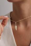 14 Ayar Altın Taşlı Tüy Charm Kolye