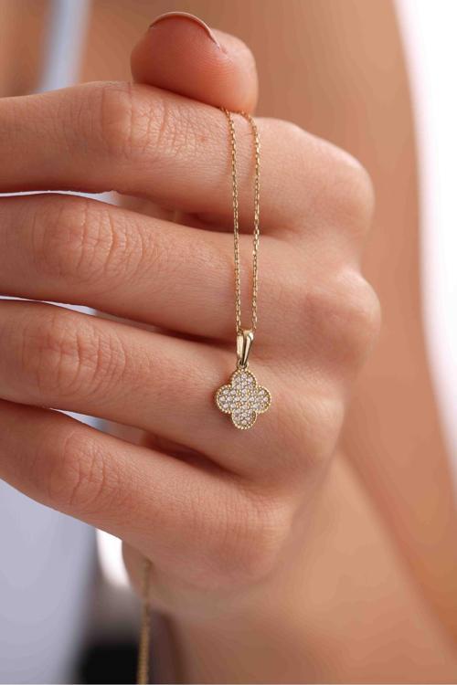 14 Ayar Altın Taşlı Yonca Kolye Ucu.