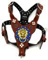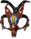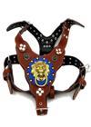 Kahverengi-Mavi Aslan başlı pirinç halkalı deri köpek göğüslük.